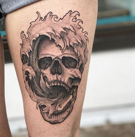 Jes Stricler ﷯JES IS A SELF TAUGHT TATTOO ARTIST AND CREDITS HIS CLIENTS, FRIENDS AND OTHER TATTOOERS FOR PUSHING HIS CREATIVITY. HE IS ONE OF THE MOST VERSATILE TATTOO ARTISTS IN THE MIDWEST BUT IS OFTEN RECOGNIZED FOR HIS NEO-TRADITIONAL COLOR TATTOOS AND HIS GEOMETRIC BLACK AND DOTWORK. CREATING CUSTOM TATTOOS WITH CLEAN LINE WORK, LOTS OF BLACK, BRIGHT COLORS, AND HIGH CONTRAST IS WHAT YOU WILL FIRST NOTICE WHEN LOOKING THROUGH JES'S PORTFOLIO. AT THIS POINT IN HIS CAREER HE DOES MANY LARGE SCALE TATTOOS (SLEEVES, BACK AND CHEST PIECES, FULL LEGS), ALWAYS PAYING ATTENTION TO THE WAY A TATTOO FLOWS ON THE BODY AND HOW IT WILL HOLD UP OVER TIME. JES LOVES PUTTING HIS OWN SPIN ON YOUR IDEA AND SOME OF HIS FAVORITE THINGS TO TATTOO ARE: ANIMALS, FLOWERS, MANDALAS, LADY HEADS AND ANY JAPANESE SUBJECT MATTER. JES IS CURRENTLY TAKING ON PROJECTS THAT ARE CREATIVELY INSPIRING TO HIM AND WOULD LOVE TO HEAR YOUR IDEAS FOR YOUR NEXT TATTOO. JES IS HUGE STAR WARS FAN, HE LIKES WORKING OUT, PLAYING WITH HIS DOGS AND FOUR WHEELING IN HIS JEEP.